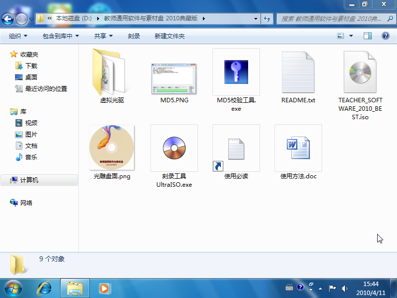 2010.04.11 发布《教师通用软件与素材盘 2010典藏版》;